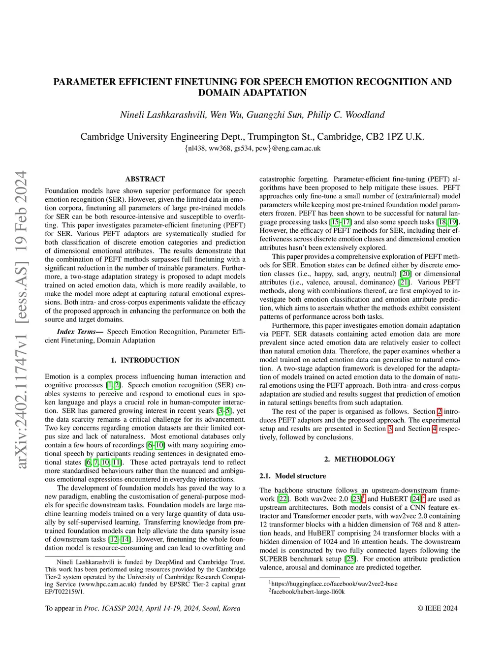 Parameter Efficient Finetuning for Speech Emotion Recognition and Domain