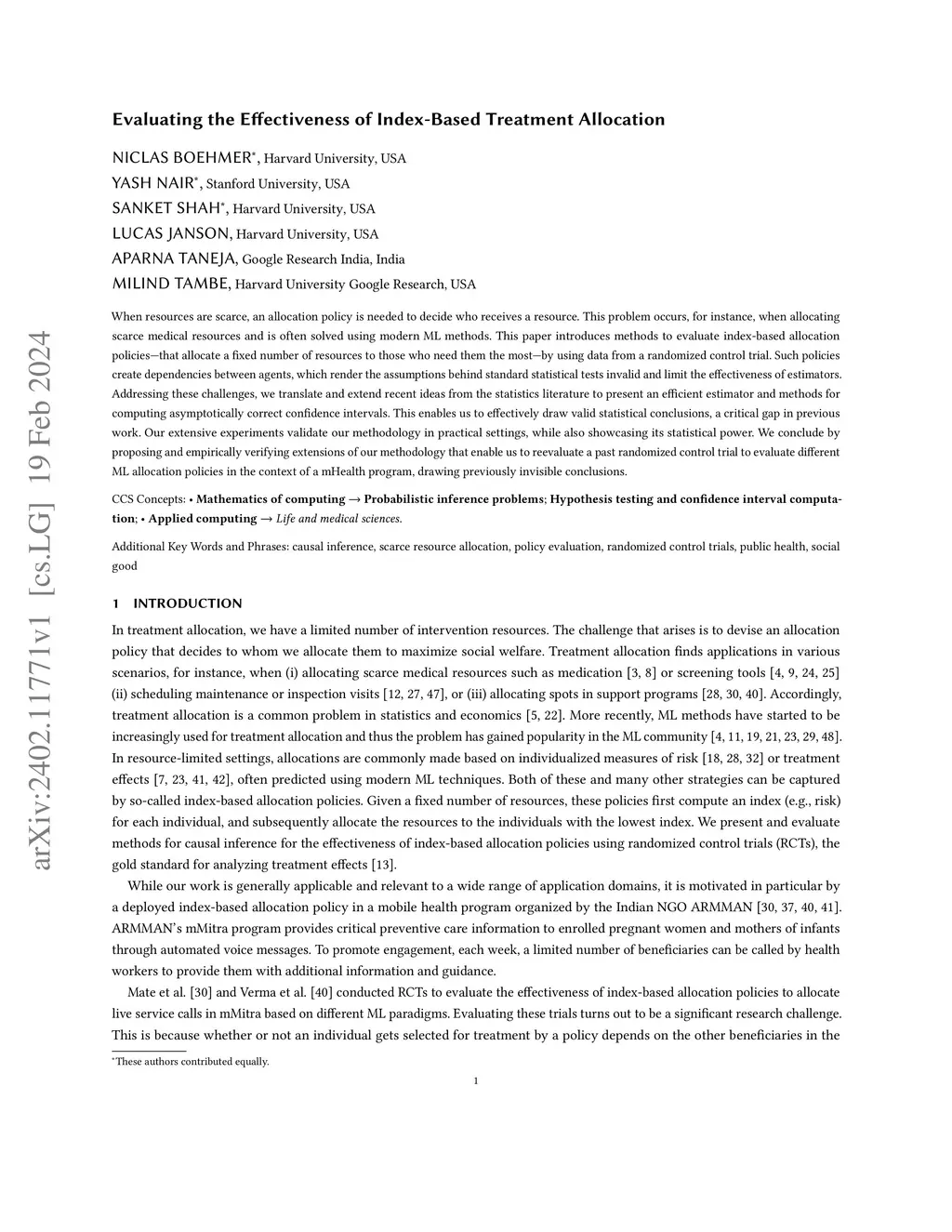 When resources are scarce, an allocation policy is needed to decide who receives a resource. This problem occurs, for instance, when allocating scarce medical resources and is often solved using modern ML methods. This paper introduces methods to evaluate index-based allocation policies -- that allocate a fixed number of resources to those who need them the most -- by using data from a randomized control trial. Such policies create dependencies between agents, which render the assumptions behind standard statistical tests invalid and limit the effectiveness of estimators. Addressing these challenges, we translate and extend recent ideas from the statistics literature to present an efficient estimator and methods for computing asymptotically correct confidence intervals. This enables us to effectively draw valid statistical conclusions, a critical gap in previous work. Our extensive experiments validate our methodology in practical settings, while also showcasing its statistical power. We conclude by proposing and empirically verifying extensions of our methodology that enable us to reevaluate a past randomized control trial to evaluate different ML allocation policies in the context of a mHealth program, drawing previously invisible conclusions.