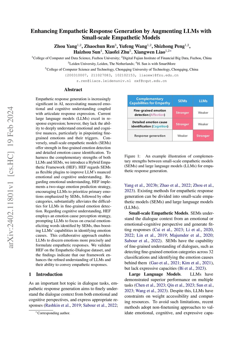 Empathetic response generation is increasingly significant in AI, necessitating nuanced emotional and cognitive understanding coupled with articulate response expression. Current large language models (LLMs) excel in response expression; however, they lack the ability to deeply understand emotional and cognitive nuances, particularly in pinpointing fine-grained emotions and their triggers. Conversely, small-scale empathetic models (SEMs) offer strength in fine-grained emotion detection and detailed emotion cause identification. To harness the complementary strengths of both LLMs and SEMs, we introduce a Hybrid Empathetic Framework (HEF). HEF regards SEMs as flexible plugins to improve LLM's nuanced emotional and cognitive understanding. Regarding emotional understanding, HEF implements a two-stage emotion prediction strategy, encouraging LLMs to prioritize primary emotions emphasized by SEMs, followed by other categories, substantially alleviates the difficulties for LLMs in fine-grained emotion detection. Regarding cognitive understanding, HEF employs an emotion cause perception strategy, prompting LLMs to focus on crucial emotion-eliciting words identified by SEMs, thus boosting LLMs' capabilities in identifying emotion causes. This collaborative approach enables LLMs to discern emotions more precisely and formulate empathetic responses. We validate HEF on the Empathetic-Dialogue dataset, and the findings indicate that our framework enhances the refined understanding of LLMs and their ability to convey empathetic responses.