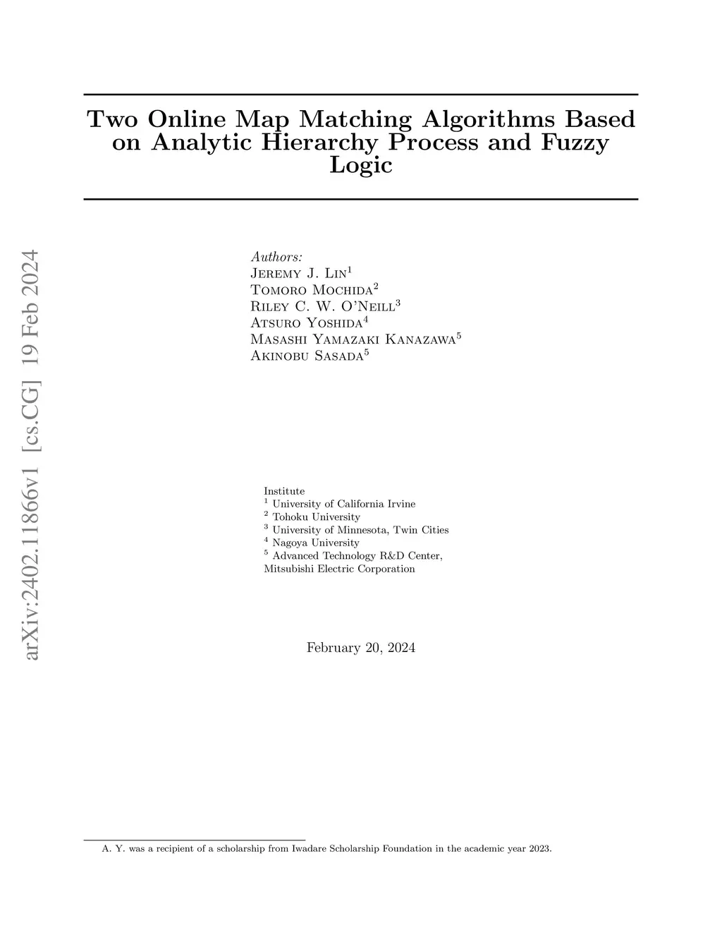 Our aim of this paper is to develop new map matching algorithms and to improve upon previous work. We address two key approaches: Analytic Hierarchy Process (AHP) map matching and fuzzy logic map matching. AHP is a decision-making method that combines mathematical analysis with human judgment, and fuzzy logic is an approach to computing based on the degree of truth and aims at modeling the imprecise modes of reasoning from 0 to 1 rather than the usual boolean logic. Of these algorithms, the way of our applying AHP to map matching is newly developed in this paper, meanwhile, our application of fuzzy logic to map matching is mostly the same as existing research except for some small changes. Because of the common characteristic that both methods are designed to handle imprecise information and simplicity for implementation, we decided to use these methods.