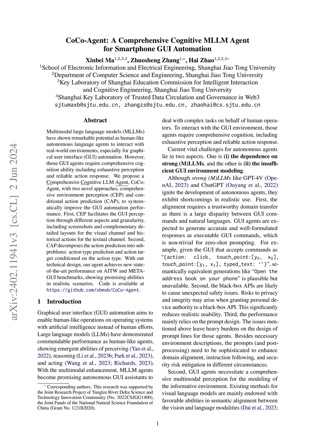 CoCo-Agent: A Comprehensive Cognitive MLLM Agent for Smartphone GUI