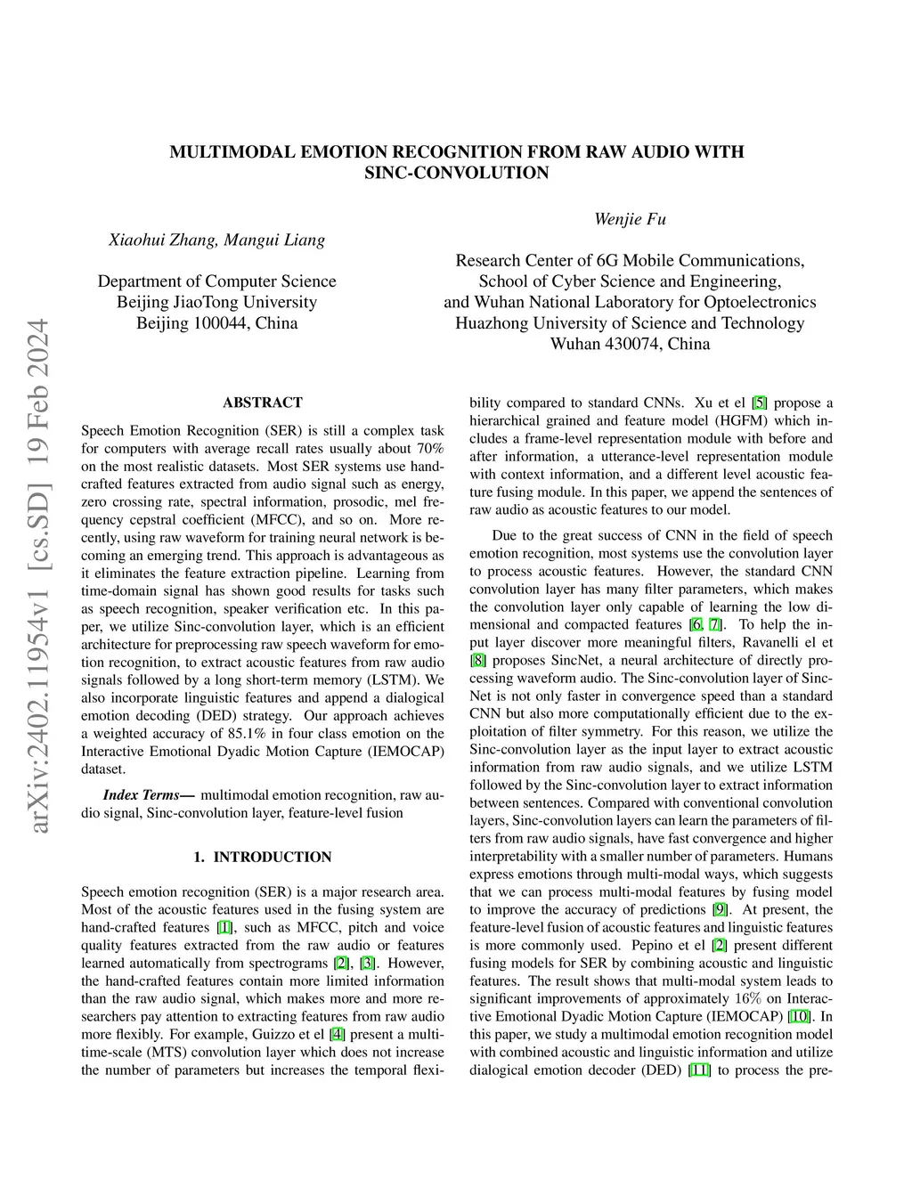 Multimodal Emotion Recognition from Raw Audio with Sinc-convolution
