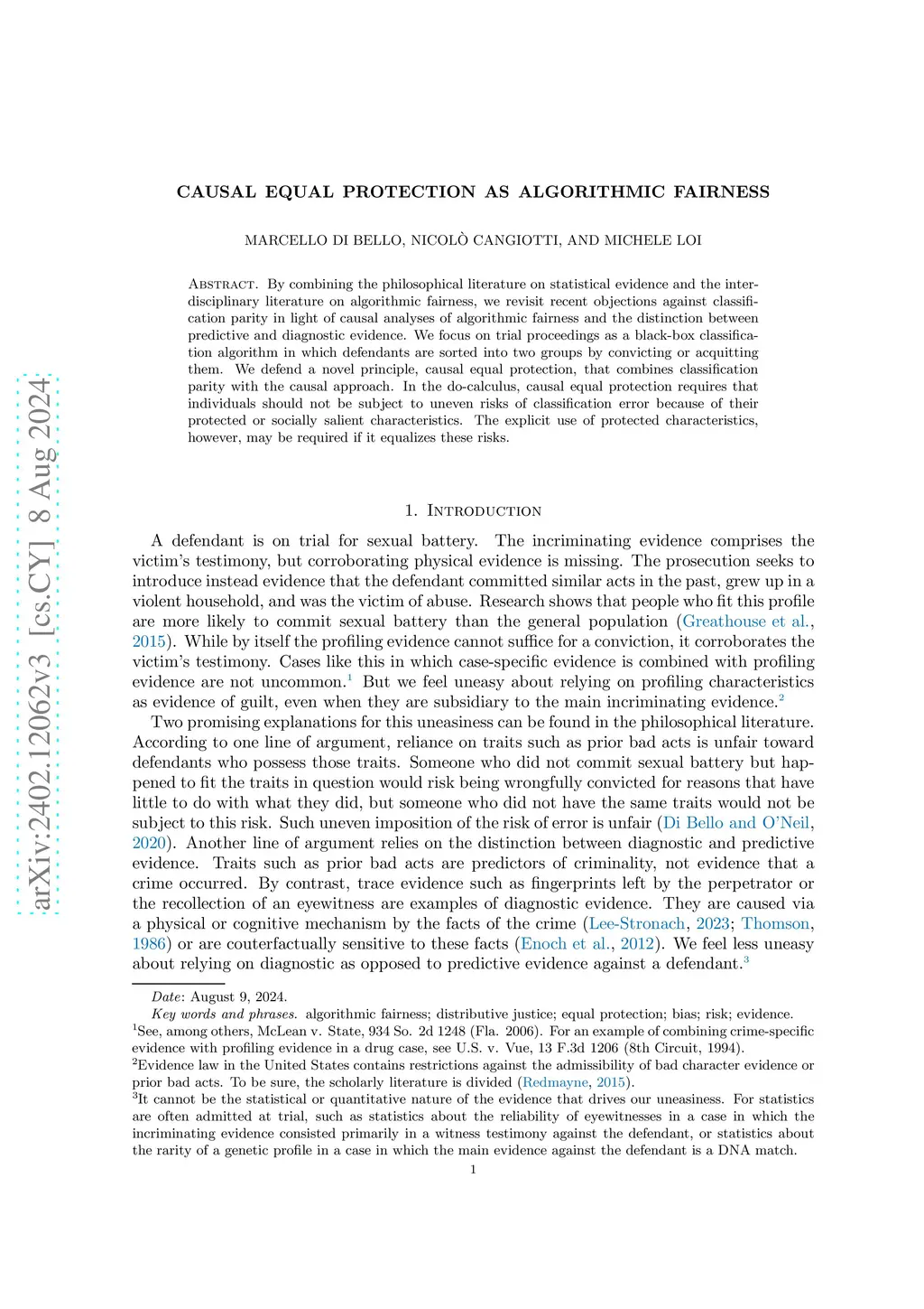By combining the philosophical literature on statistical evidence and the interdisciplinary literature on algorithmic fairness, we revisit recent objections against classification parity in light of causal analyses of algorithmic fairness and the distinction between predictive and diagnostic evidence. We focus on trial proceedings as a black-box classification algorithm in which defendants are sorted into two groups by convicting or acquitting them. We defend a novel principle, causal equal protection, that combines classification parity with the causal approach. In the do-calculus, causal equal protection requires that individuals should not be subject to uneven risks of classification error because of their protected or socially salient characteristics. The explicit use of protected characteristics, however, may be required if it equalizes these risks.