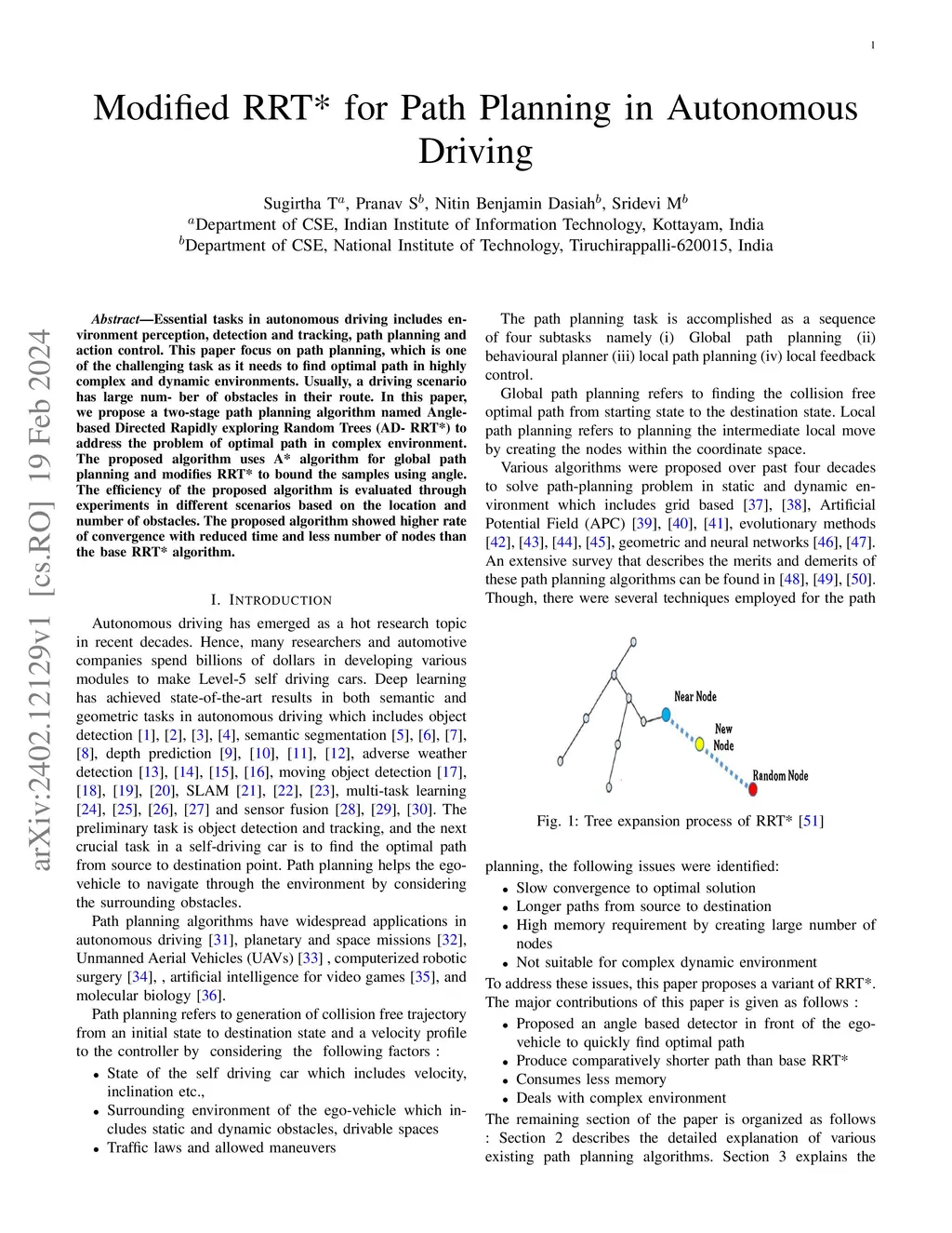 Modified RRT* for Path Planning in Autonomous Driving