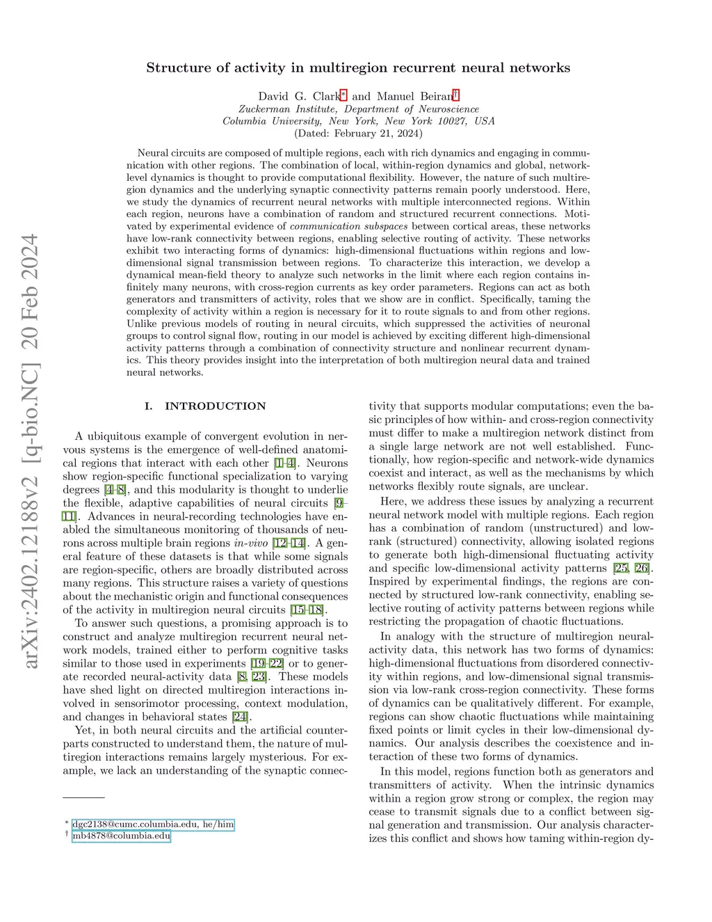 Structure of activity in multiregion recurrent neural networks
