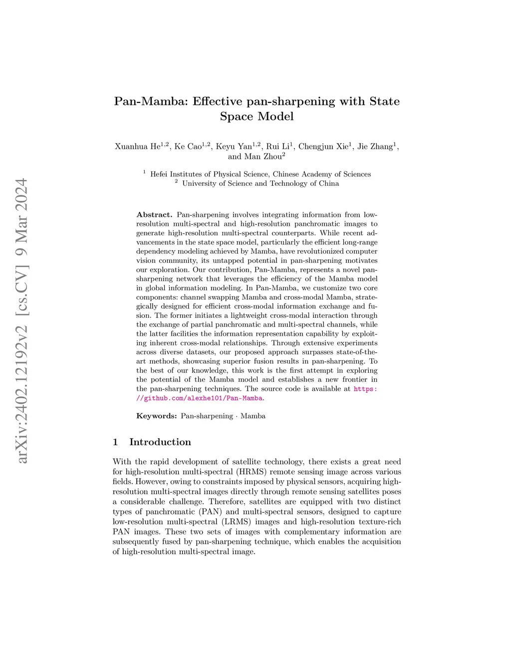 Pan-Mamba: Effective pan-sharpening with State Space Model