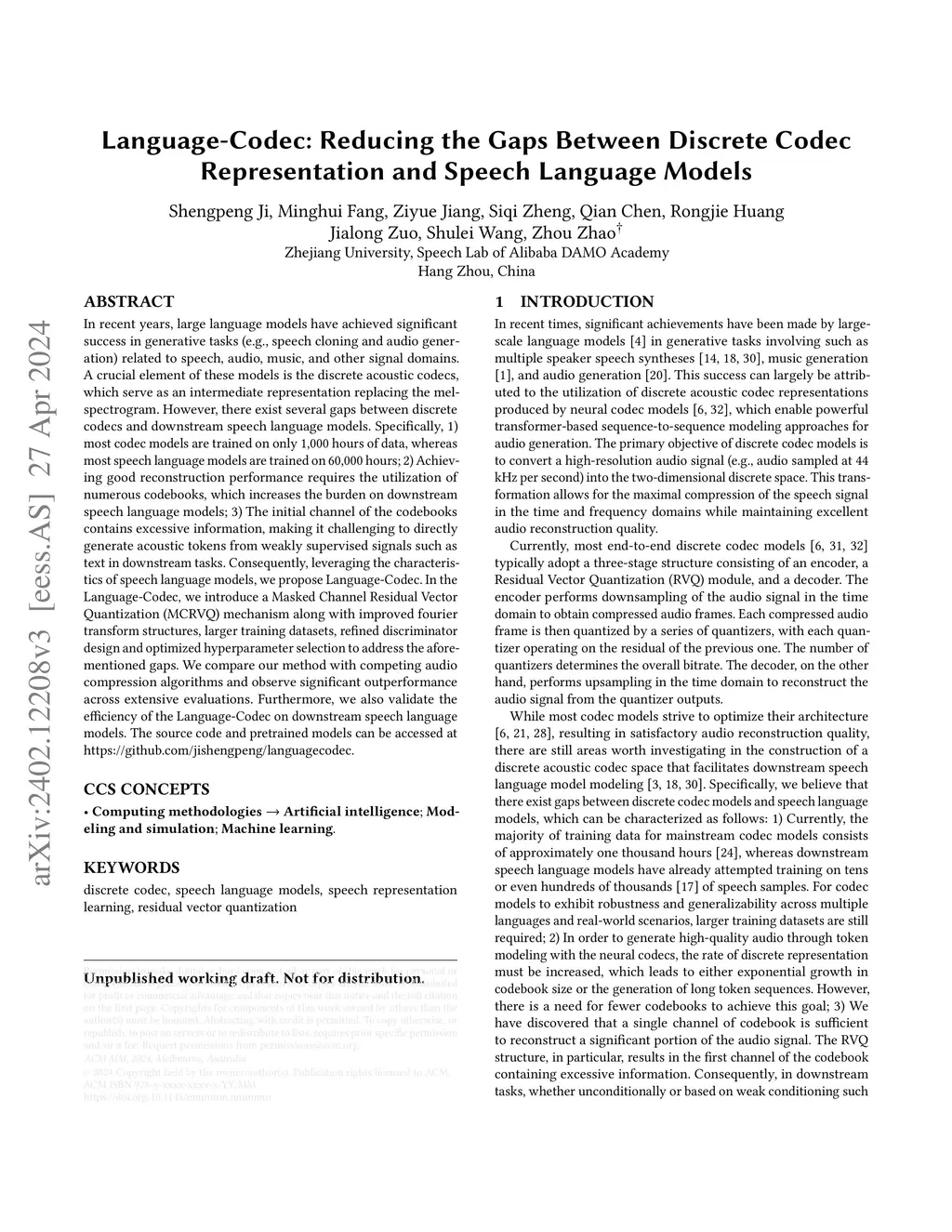 In recent years, large language models have achieved significant success in generative tasks related to speech, audio, music, and other signal domains. A crucial element of these models is the discrete acoustic codecs, which serve as an intermediate representation replacing the mel-spectrogram. However, there exist several gaps between discrete codecs and downstream speech language models. Specifically, 1) Due to the reconstruction paradigm of the Codec model and the structure of residual vector quantization, the initial channel of the codebooks contains excessive information, making it challenging to directly generate acoustic tokens from weakly supervised signals such as text in downstream tasks. 2) numerous codebooks increases the burden on downstream speech language models. Consequently, leveraging the characteristics of speech language models, we propose Language-Codec. In the Language-Codec, we introduce a Masked Channel Residual Vector Quantization (MCRVQ) mechanism along with improved fourier transform structures and attention blocks, refined discriminator design to address the aforementioned gaps. We compare our method with competing audio compression algorithms and observe significant outperformance across extensive evaluations. Furthermore, we also validate the efficiency of the Language-Codec on downstream speech language models. The source code and pre-trained models can be accessed atthis https URL.