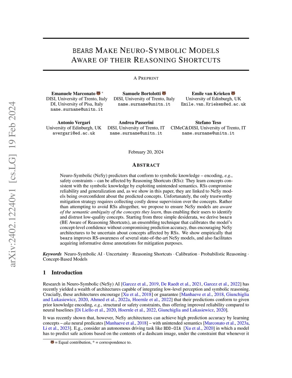 BEARS Make Neuro-Symbolic Models Aware of their Reasoning Shortcuts