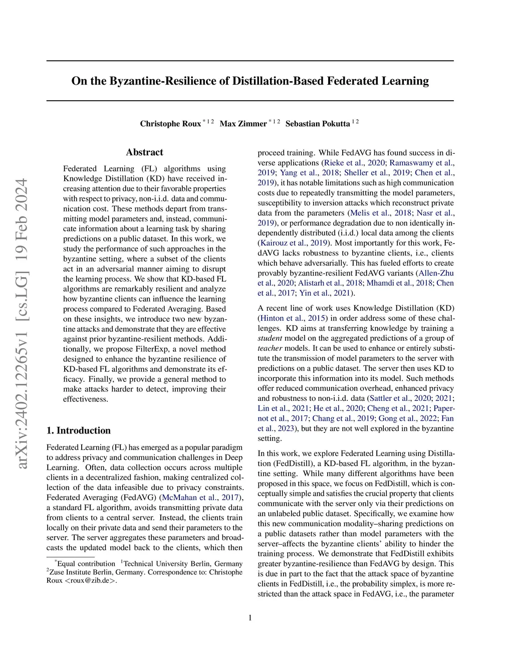 Federated Learning (FL) algorithms using Knowledge Distillation (KD) have received increasing attention due to their favorable properties with respect to privacy, non-i.i.d. data and communication cost. These methods depart from transmitting model parameters and instead communicate information about a learning task by sharing predictions on a public dataset. In this work, we study the performance of such approaches in the byzantine setting, where a subset of the clients act in an adversarial manner aiming to disrupt the learning process. We show that KD-based FL algorithms are remarkably resilient and analyze how byzantine clients can influence the learning process. Based on these insights, we introduce two new byzantine attacks and demonstrate their ability to break existing byzantine-resilient methods. Additionally, we propose a novel defence method which enhances the byzantine resilience of KD-based FL algorithms. Finally, we provide a general framework to obfuscate attacks, making them significantly harder to detect, thereby improving their effectiveness. Our findings serve as an important building block in the analysis of byzantine FL, contributing through the development of new attacks and new defence mechanisms, further advancing the robustness of KD-based FL algorithms.