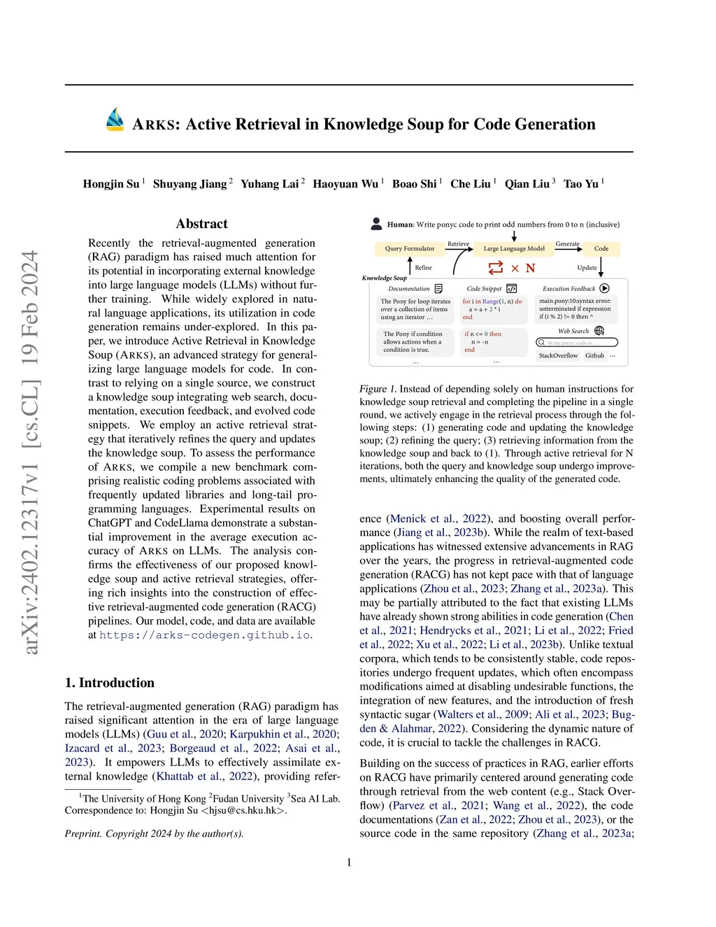 ARKS: Active Retrieval in Knowledge Soup for Code Generation