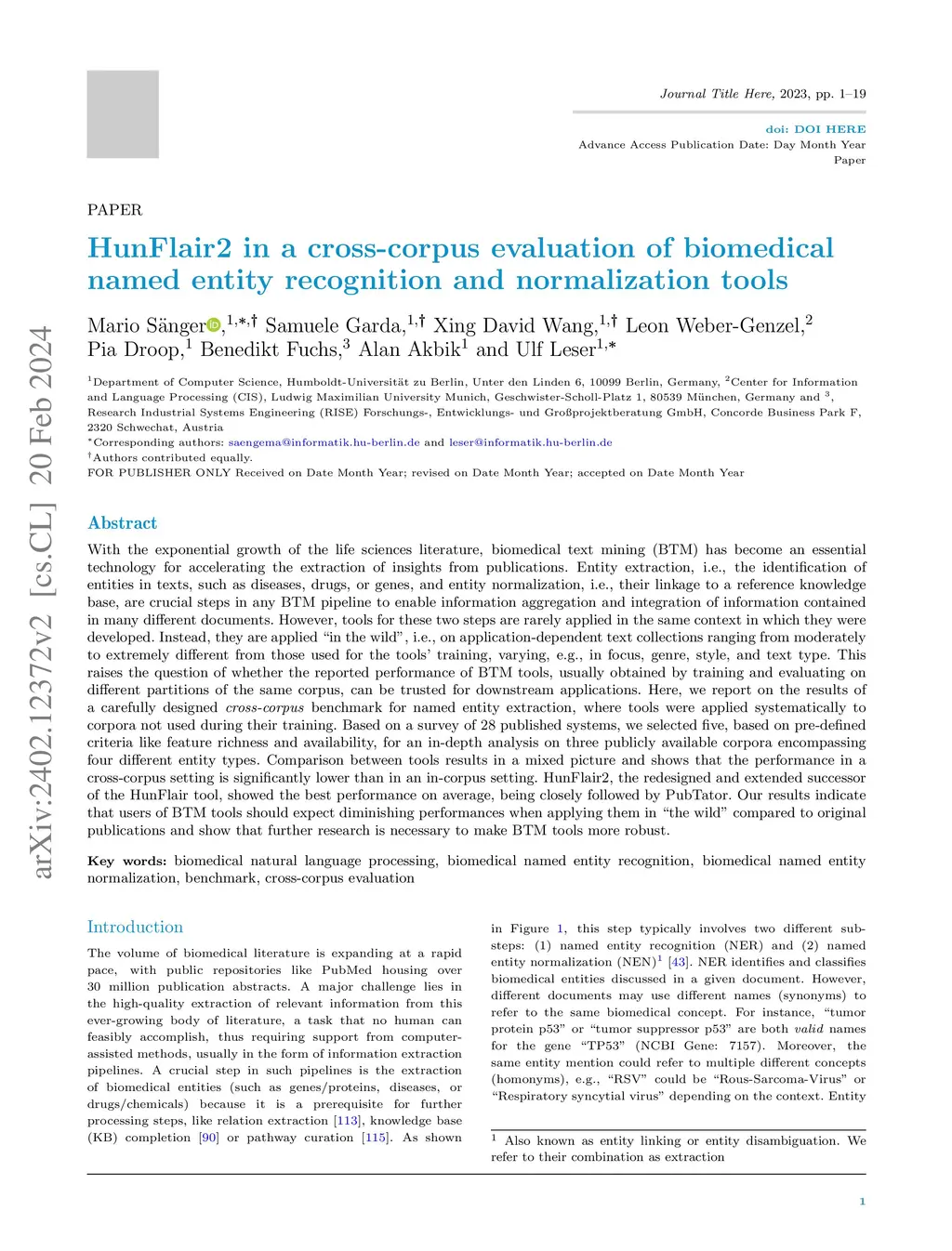 HunFlair2 in a cross-corpus evaluation of biomedical named entity