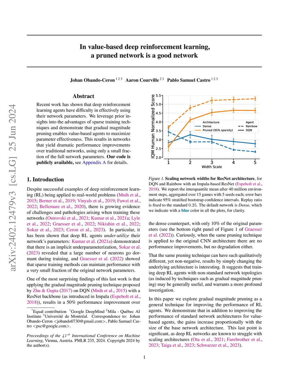 Recent work has shown that deep reinforcement learning agents have difficulty in effectively using their network parameters. We leverage prior insights into the advantages of sparse training techniques and demonstrate that gradual magnitude pruning enables value-based agents to maximize parameter effectiveness. This results in networks that yield dramatic performance improvements over traditional networks, using only a small fraction of the full network parameters.