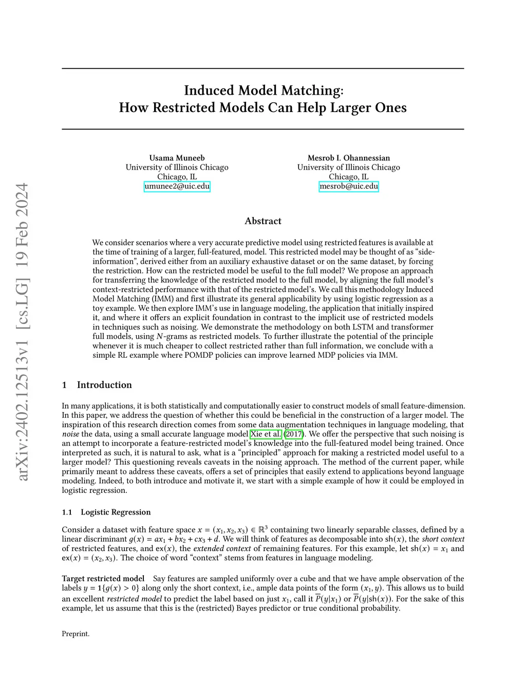 We consider scenarios where a very accurate (often small) predictive model using restricted features is available when training a full-featured (often larger) model. This restricted model may be thought of as side-information'', and can come either from an auxiliary dataset or from the same dataset by forcing the restriction. How can the restricted model be useful to the full model? To answer this, we introduce a methodology called Induced Model Matching (IMM). IMM aligns the context-restricted, or induced, version of the large model with the restricted model. We relate IMM to approaches such as noising, which is implicit in addressing the problem, and reverse knowledge distillation from weak teachers, which is explicit but does not exploit restriction being the nature of the weakness. We show that these prior methods can be thought of as approximations to IMM and can be problematic in terms of consistency. Experimentally, we first motivate IMM using logistic regression as a toy example. We then explore it in language modeling, the application that initially inspired it, and demonstrate it on both LSTM and transformer full models, using bigrams as restricted models. We lastly give a simple RL example, which shows that POMDP policies can help learn better MDP policies. The IMM principle is thus generally applicable in common scenarios where restricted data is cheaper to collect or restricted models are easier to learn.