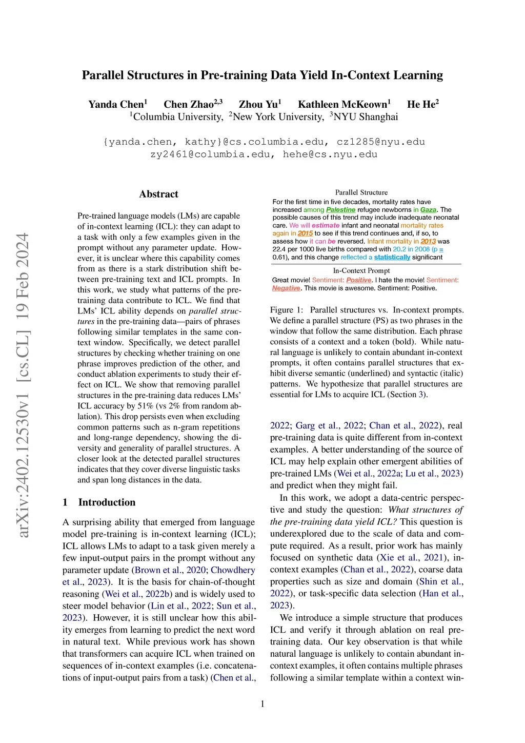 Parallel Structures in Pre-training Data Yield In-Context Learning