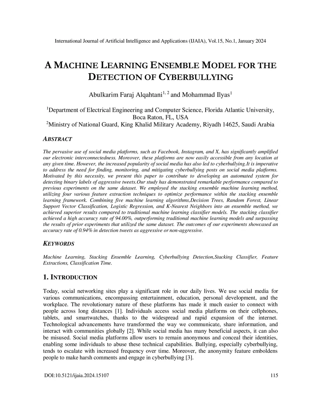 A Machine Learning Ensemble Model for the Detection of Cyberbullying