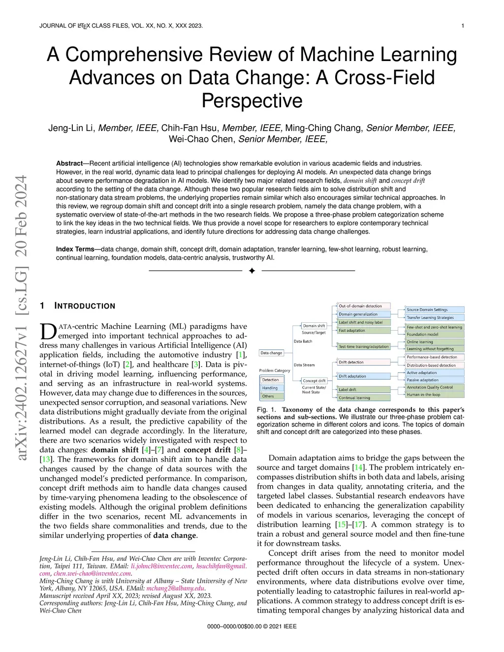 A Comprehensive Review of Machine Learning Advances on Data Change: A