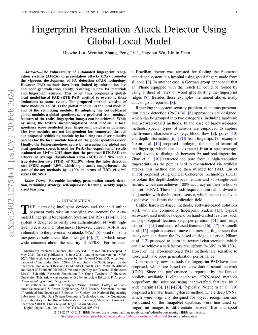 Fingerprint Presentation Attack Detector Using Global-Local Model