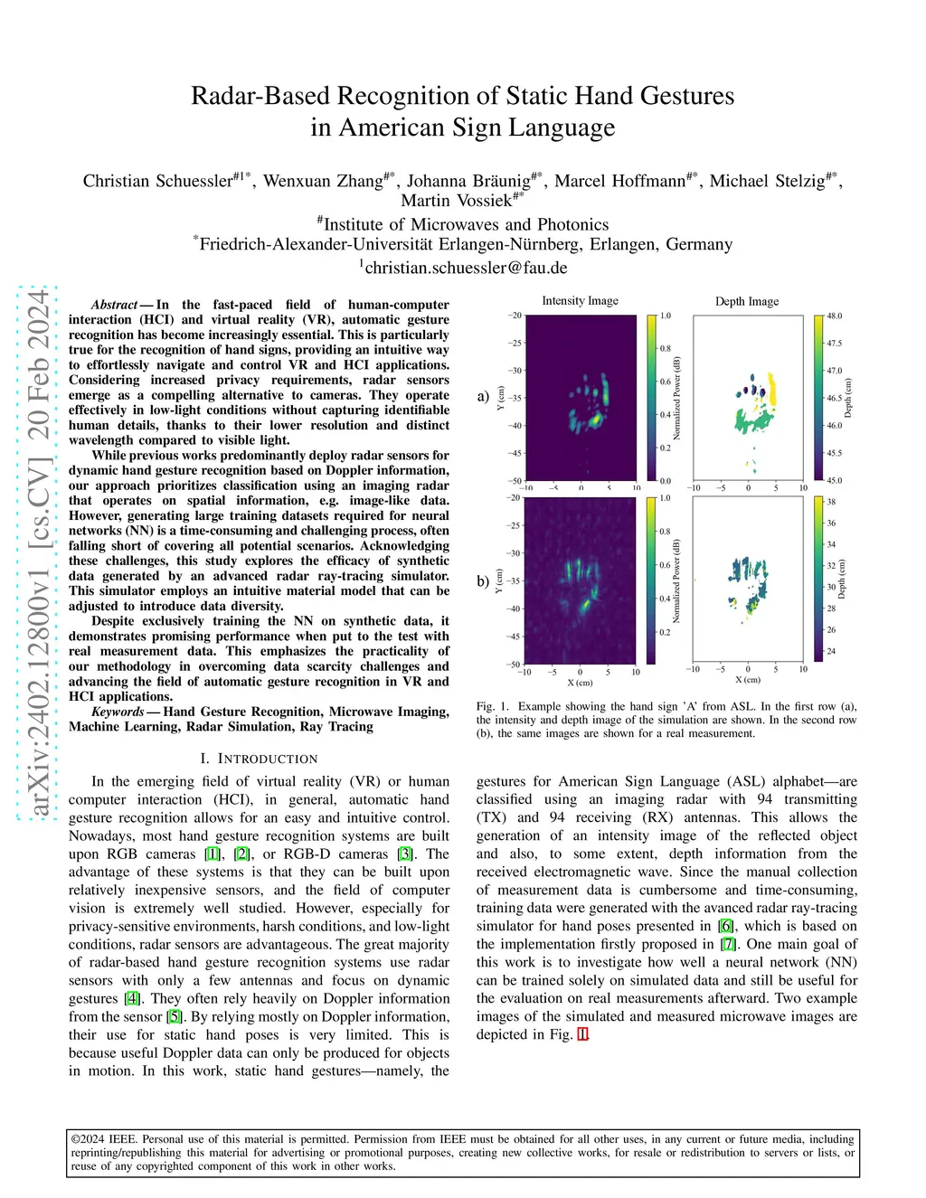 Radar-Based Recognition of Static Hand Gestures in American Sign