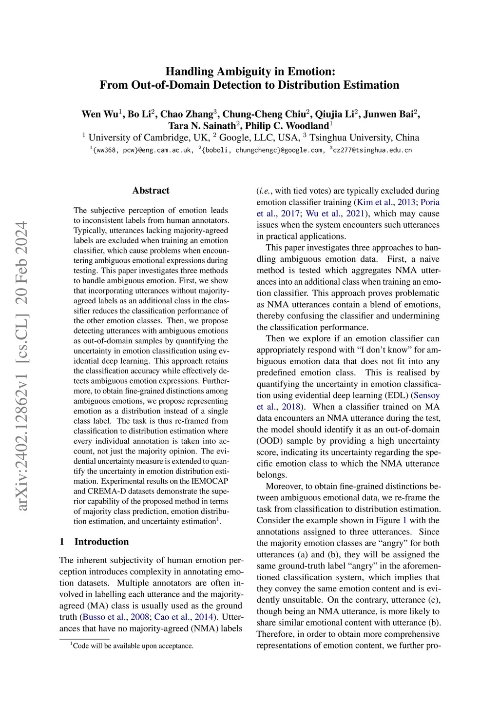 Handling Ambiguity in Emotion: From Out-of-Domain Detection to