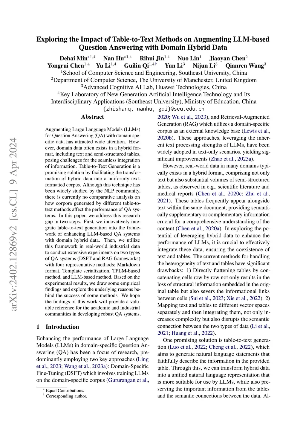 Augmenting Large Language Models (LLMs) for Question Answering (QA) with domain specific data has attracted wide attention. However, domain data often exists in a hybrid format, including text and semi-structured tables, posing challenges for the seamless integration of information. Table-to-Text Generation is a promising solution by facilitating the transformation of hybrid data into a uniformly text-formatted corpus. Although this technique has been widely studied by the NLP community, there is currently no comparative analysis on how corpora generated by different table-to-text methods affect the performance of QA systems. In this paper, we address this research gap in two steps. First, we innovatively integrate table-to-text generation into the framework of enhancing LLM-based QA systems with domain hybrid data. Then, we utilize this framework in real-world industrial data to conduct extensive experiments on two types of QA systems (DSFT and RAG frameworks) with four representative methods: Markdown format, Template serialization, TPLM-based method, and LLM-based method. Based on the experimental results, we draw some empirical findings and explore the underlying reasons behind the success of some methods. We hope the findings of this work will provide a valuable reference for the academic and industrial communities in developing robust QA systems.