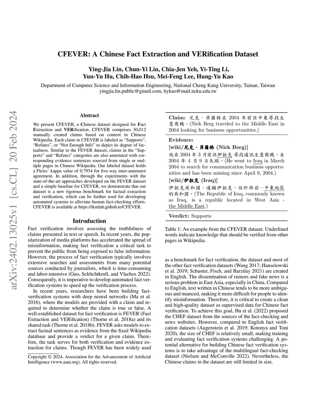 CFEVER: A Chinese Fact Extraction and VERification Dataset