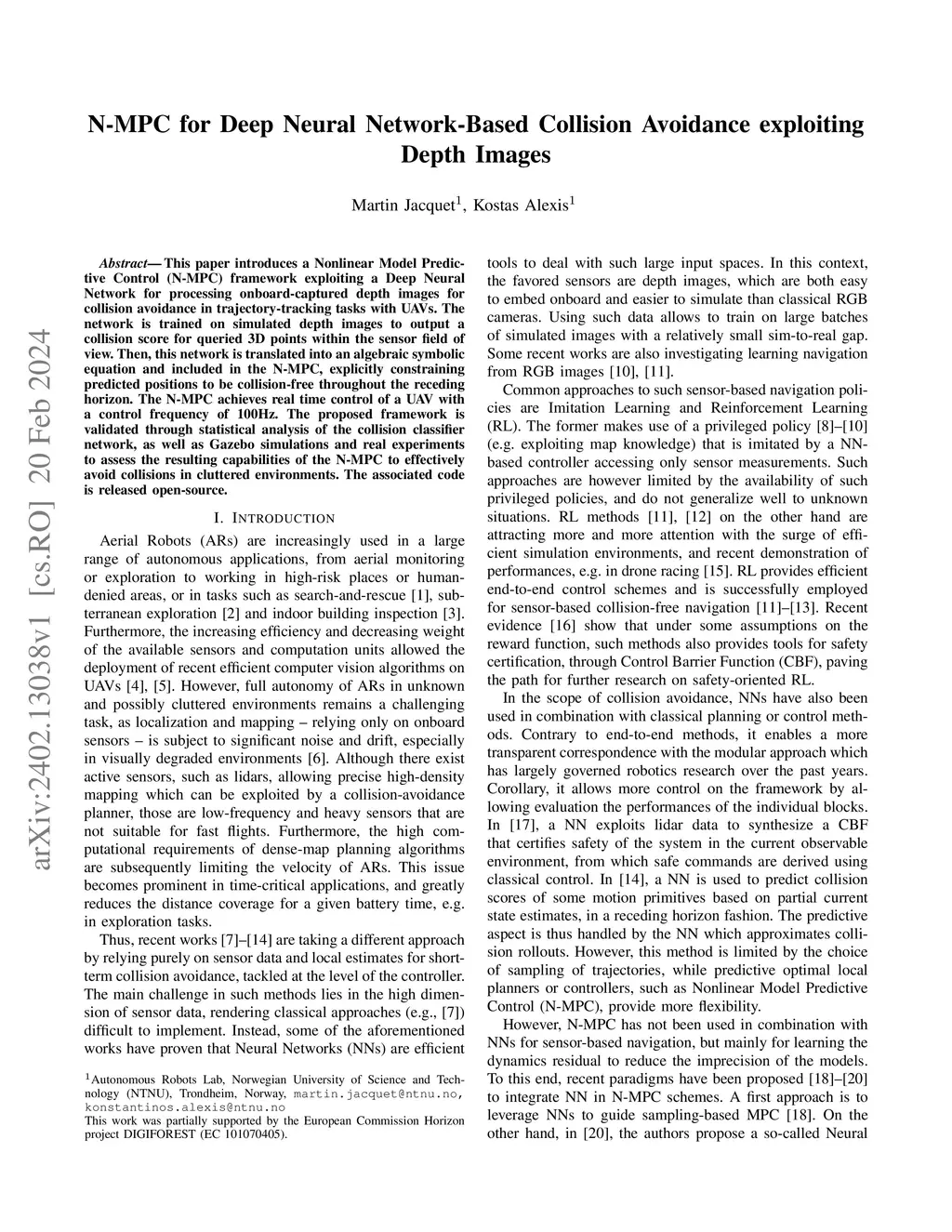 N-MPC for Deep Neural Network-Based Collision Avoidance exploiting Depth