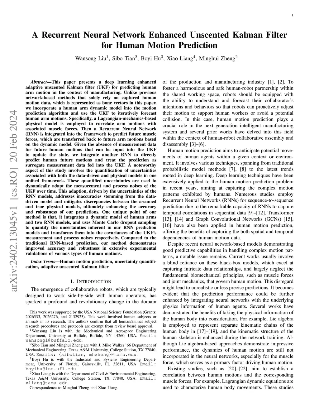 A Recurrent Neural Network Enhanced Unscented Kalman Filter for Human