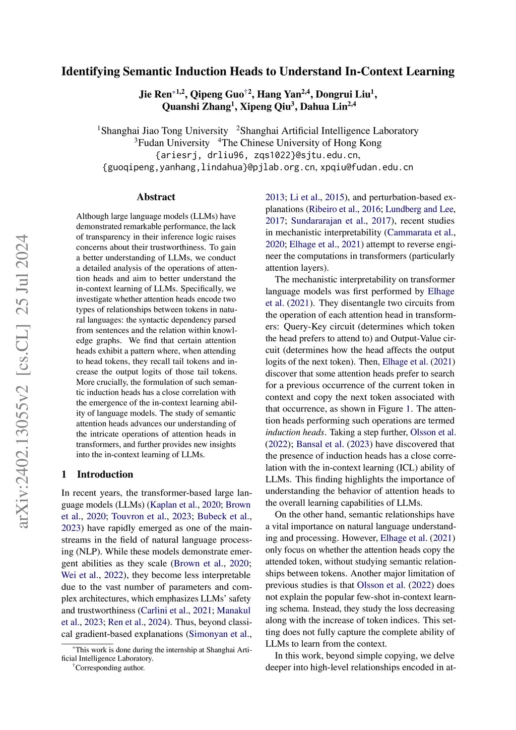 Although large language models (LLMs) have demonstrated remarkable performance, the lack of transparency in their inference logic raises concerns about their trustworthiness. To gain a better understanding of LLMs, we conduct a detailed analysis of the operations of attention heads and aim to better understand the in-context learning of LLMs. Specifically, we investigate whether attention heads encode two types of relationships between tokens present in natural languages: the syntactic dependency parsed from sentences and the relation within knowledge graphs. We find that certain attention heads exhibit a pattern where, when attending to head tokens, they recall tail tokens and increase the output logits of those tail tokens. More crucially, the formulation of such semantic induction heads has a close correlation with the emergence of the in-context learning ability of language models. The study of semantic attention heads advances our understanding of the intricate operations of attention heads in transformers, and further provides new insights into the in-context learning of LLMs.