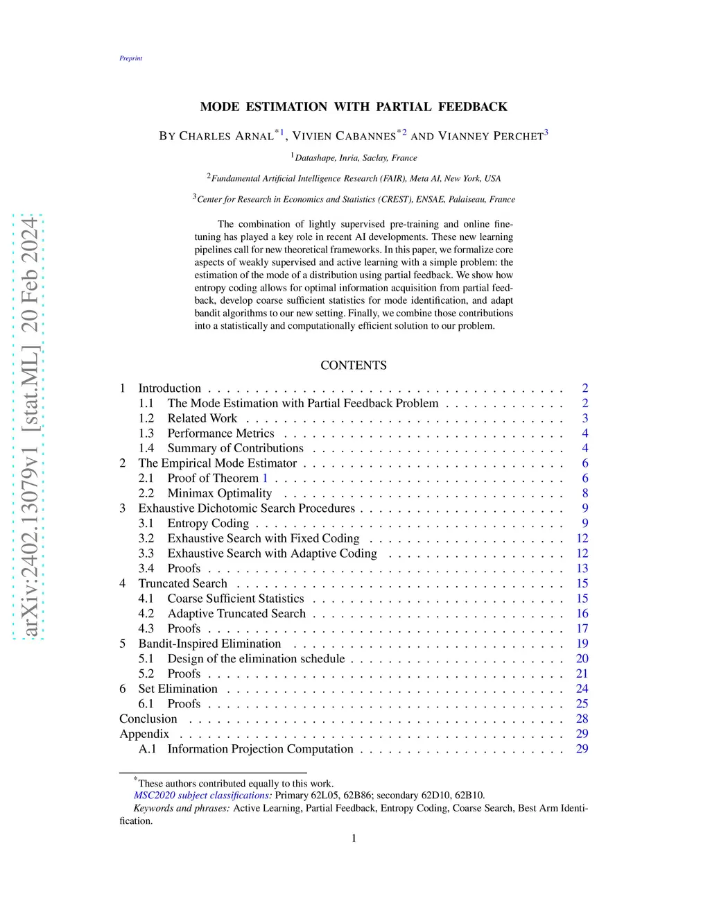 The combination of lightly supervised pre-training and online fine-tuning has played a key role in recent AI developments. These new learning pipelines call for new theoretical frameworks. In this paper, we formalize core aspects of weakly supervised and active learning with a simple problem: the estimation of the mode of a distribution using partial feedback. We show how entropy coding allows for optimal information acquisition from partial feedback, develop coarse sufficient statistics for mode identification, and adapt bandit algorithms to our new setting. Finally, we combine those contributions into a statistically and computationally efficient solution to our problem.
