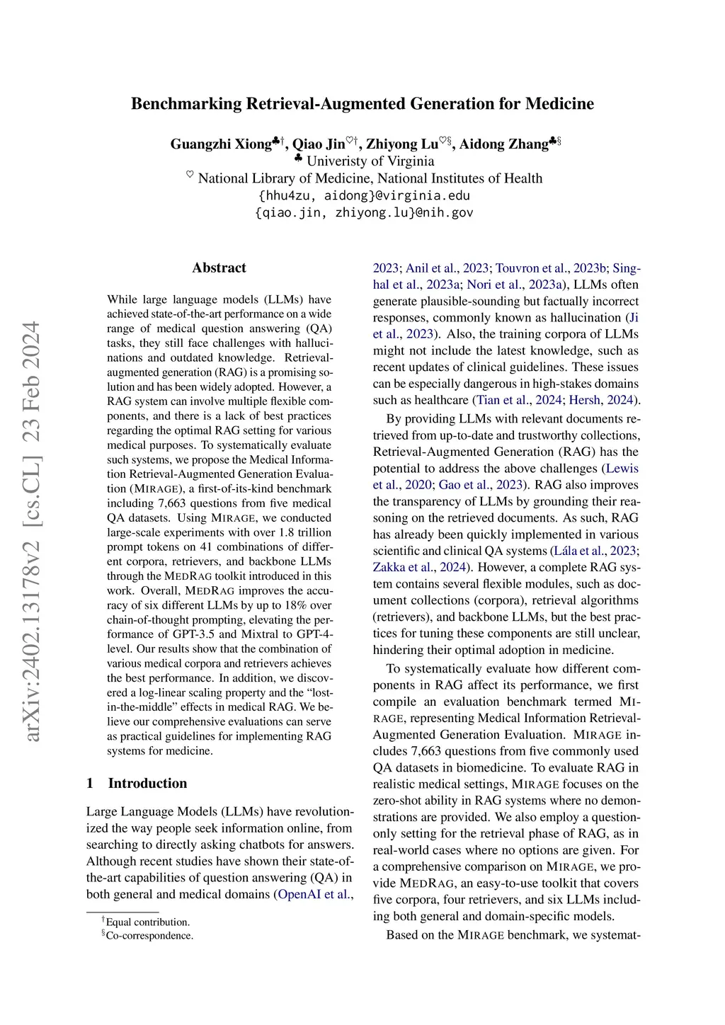 Benchmarking Retrieval-Augmented Generation for Medicine