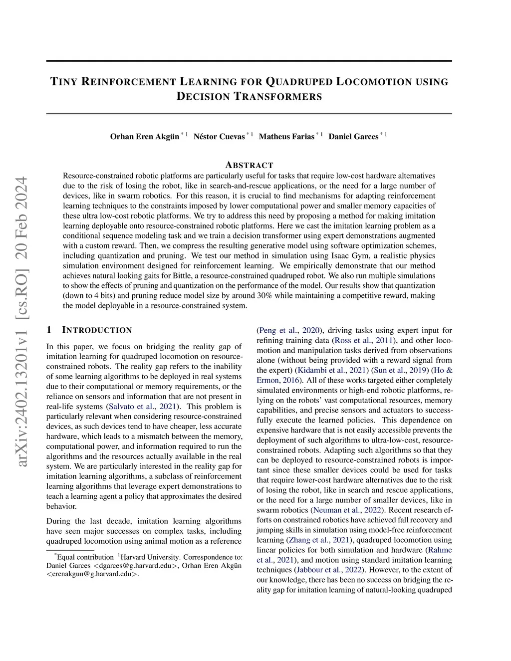 Tiny Reinforcement Learning for Quadruped Locomotion using Decision