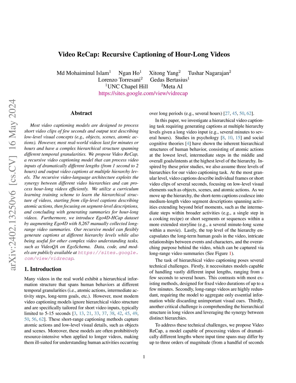 Video ReCap: Recursive Captioning of Hour-Long Videos