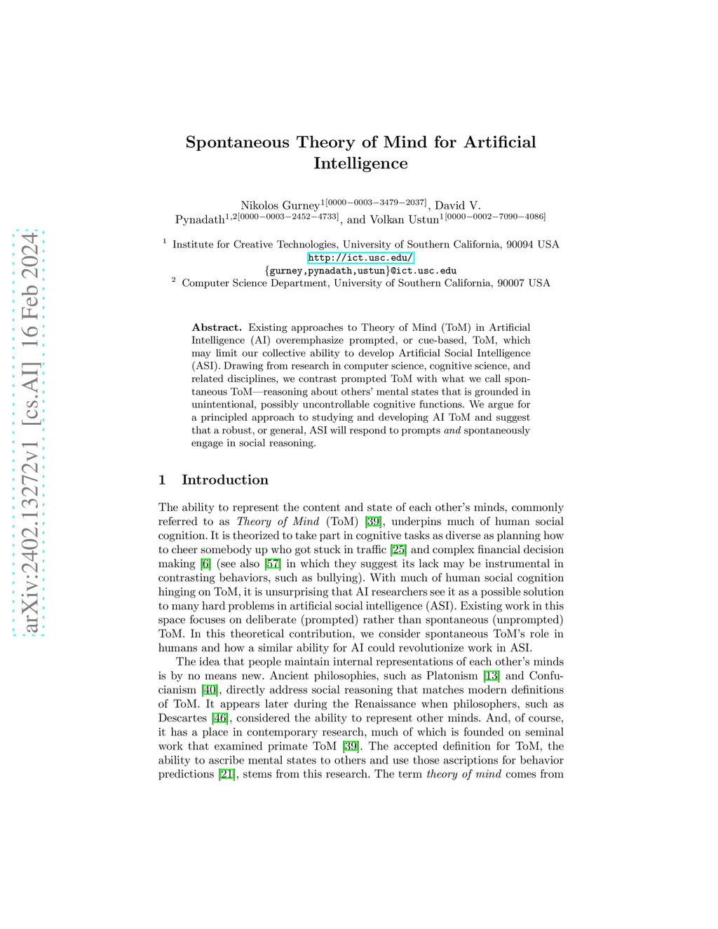 Existing approaches to Theory of Mind (ToM) in Artificial Intelligence (AI) overemphasize prompted, or cue-based, ToM, which may limit our collective ability to develop Artificial Social Intelligence (ASI). Drawing from research in computer science, cognitive science, and related disciplines, we contrast prompted ToM with what we call spontaneous ToM -- reasoning about others' mental states that is grounded in unintentional, possibly uncontrollable cognitive functions. We argue for a principled approach to studying and developing AI ToM and suggest that a robust, or general, ASI will respond to prompts \textit{and} spontaneously engage in social reasoning.