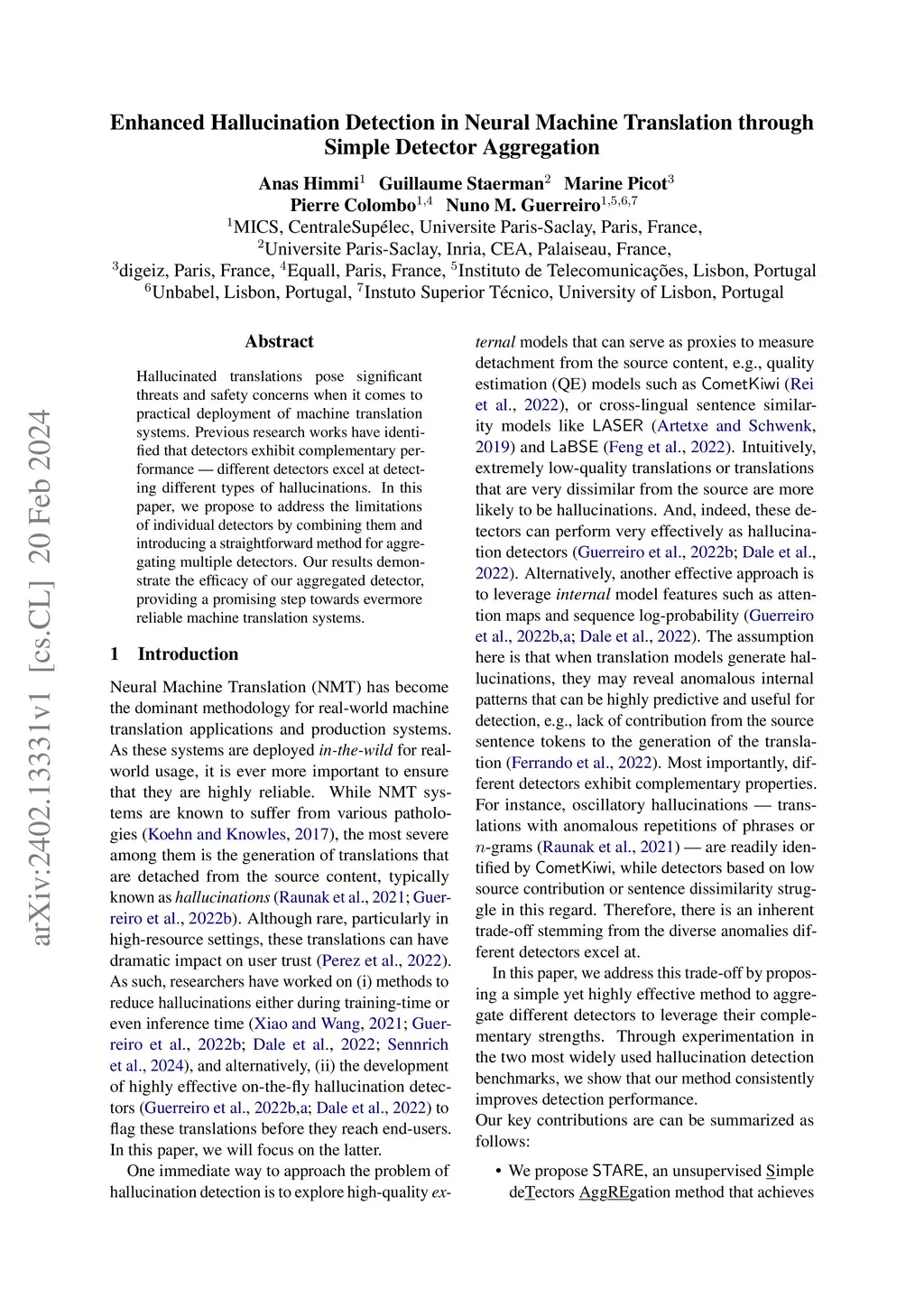 Hallucinated translations pose significant threats and safety concerns when it comes to the practical deployment of machine translation systems. Previous research works have identified that detectors exhibit complementary performance different detectors excel at detecting different types of hallucinations. In this paper, we propose to address the limitations of individual detectors by combining them and introducing a straightforward method for aggregating multiple detectors. Our results demonstrate the efficacy of our aggregated detector, providing a promising step towards evermore reliable machine translation systems.