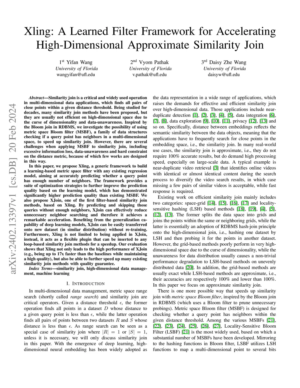 Xling: A Learned Filter Framework for Accelerating High-Dimensional