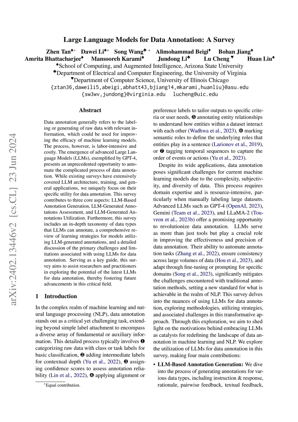 Data annotation generally refers to the labeling or generating of raw data with relevant information, which could be used for improving the efficacy of machine learning models. The process, however, is labor-intensive and costly. The emergence of advanced Large Language Models (LLMs), exemplified by GPT-4, presents an unprecedented opportunity to automate the complicated process of data annotation. While existing surveys have extensively covered LLM architecture, training, and general applications, we uniquely focus on their specific utility for data annotation. This survey contributes to three core aspects: LLM-Based Annotation Generation, LLM-Generated Annotations Assessment, and LLM-Generated Annotations Utilization. Furthermore, this survey includes an in-depth taxonomy of data types that LLMs can annotate, a comprehensive review of learning strategies for models utilizing LLM-generated annotations, and a detailed discussion of the primary challenges and limitations associated with using LLMs for data annotation. Serving as a key guide, this survey aims to assist researchers and practitioners in exploring the potential of the latest LLMs for data annotation, thereby fostering future advancements in this critical field.