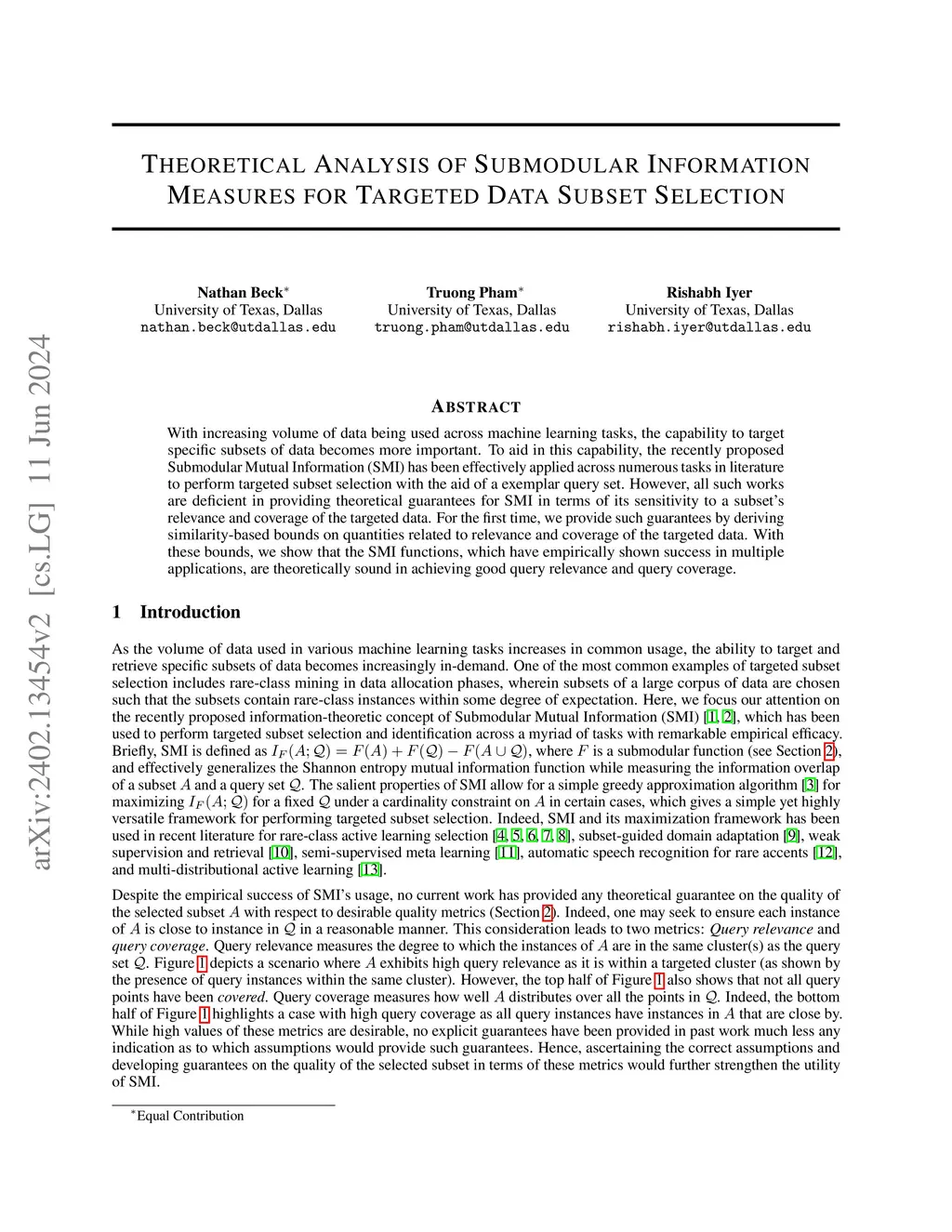 With increasing volume of data being used across machine learning tasks, the capability to target specific subsets of data becomes more important. To aid in this capability, the recently proposed Submodular Mutual Information (SMI) has been effectively applied across numerous tasks in literature to perform targeted subset selection with the aid of a exemplar query set. However, all such works are deficient in providing theoretical guarantees for SMI in terms of its sensitivity to a subset's relevance and coverage of the targeted data. For the first time, we provide such guarantees by deriving similarity-based bounds on quantities related to relevance and coverage of the targeted data. With these bounds, we show that the SMI functions, which have empirically shown success in multiple applications, are theoretically sound in achieving good query relevance and query coverage.