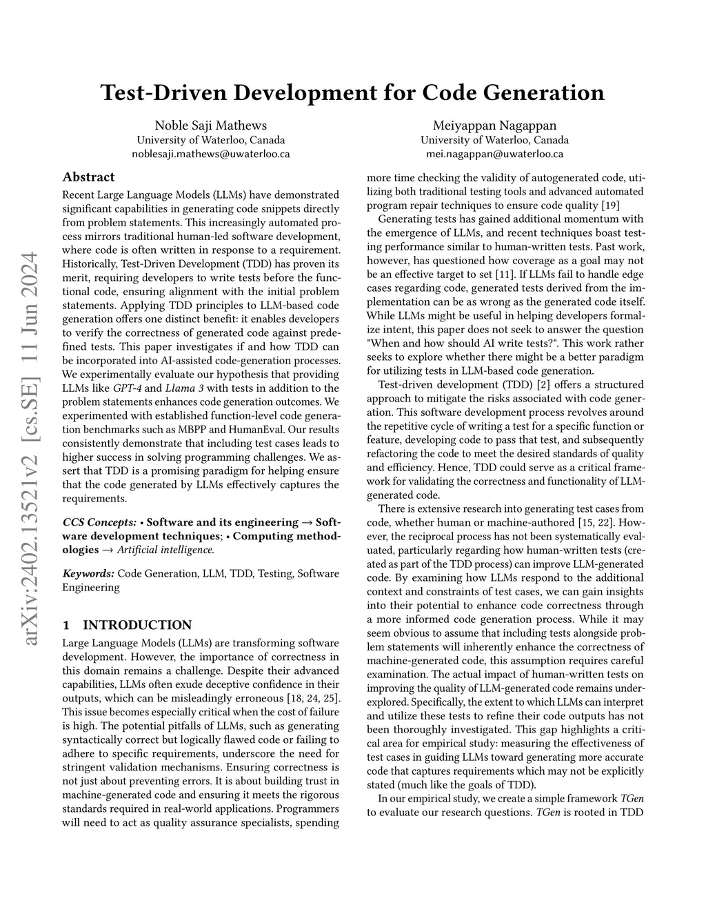 Test-Driven Development for Code Generation