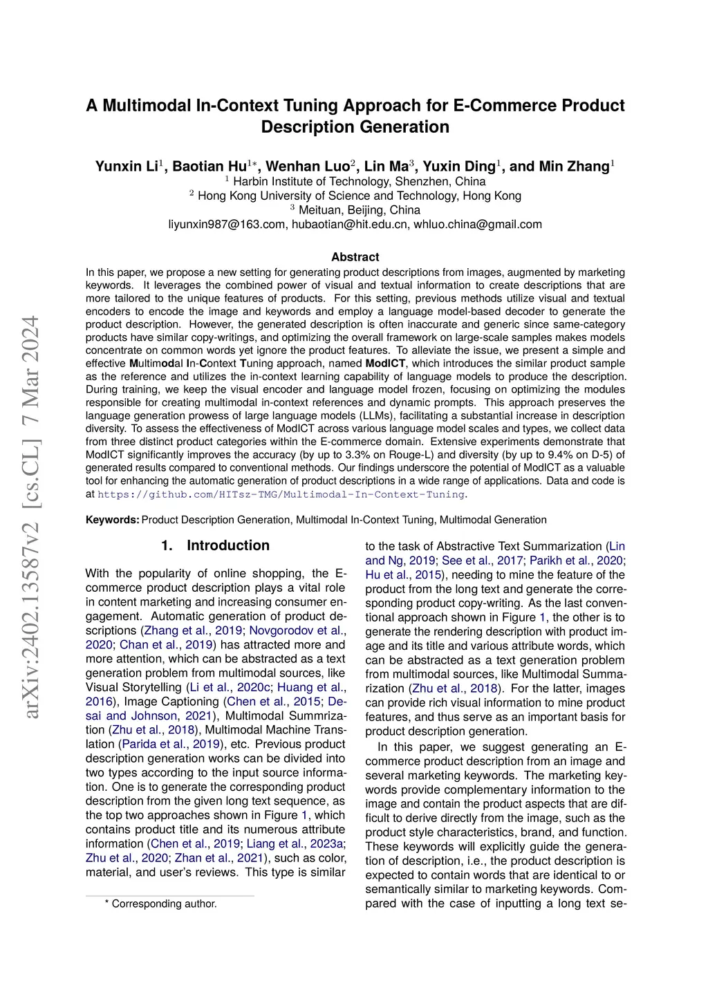 A Multimodal In-Context Tuning Approach for E-Commerce Product