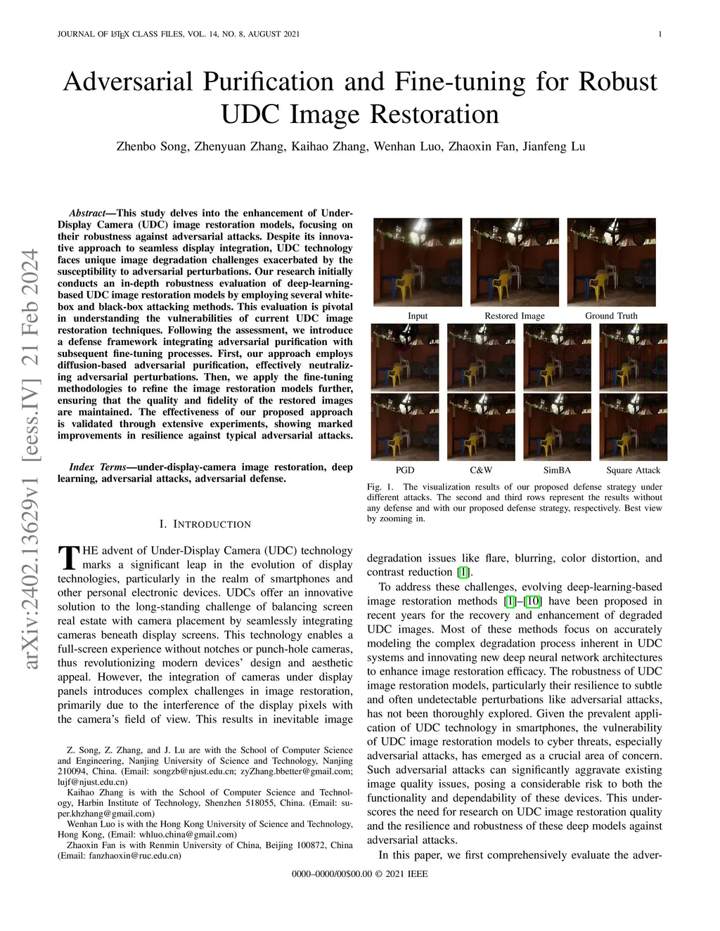 Adversarial Purification and Fine-tuning for Robust UDC Image
