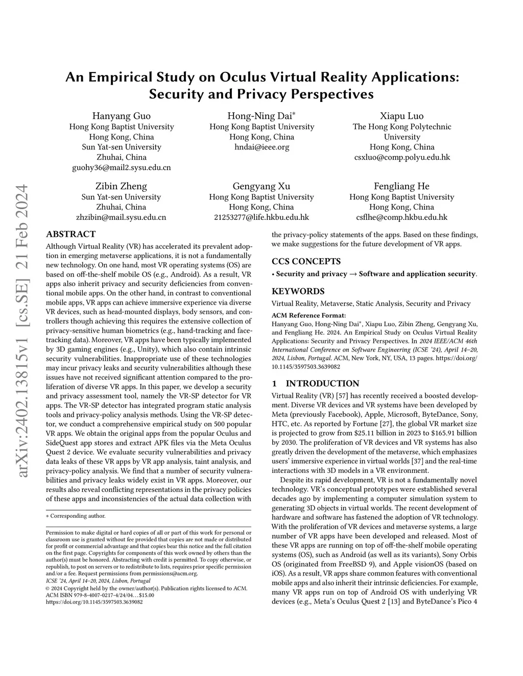 An Empirical Study on Oculus Virtual Reality Applications: Security and
