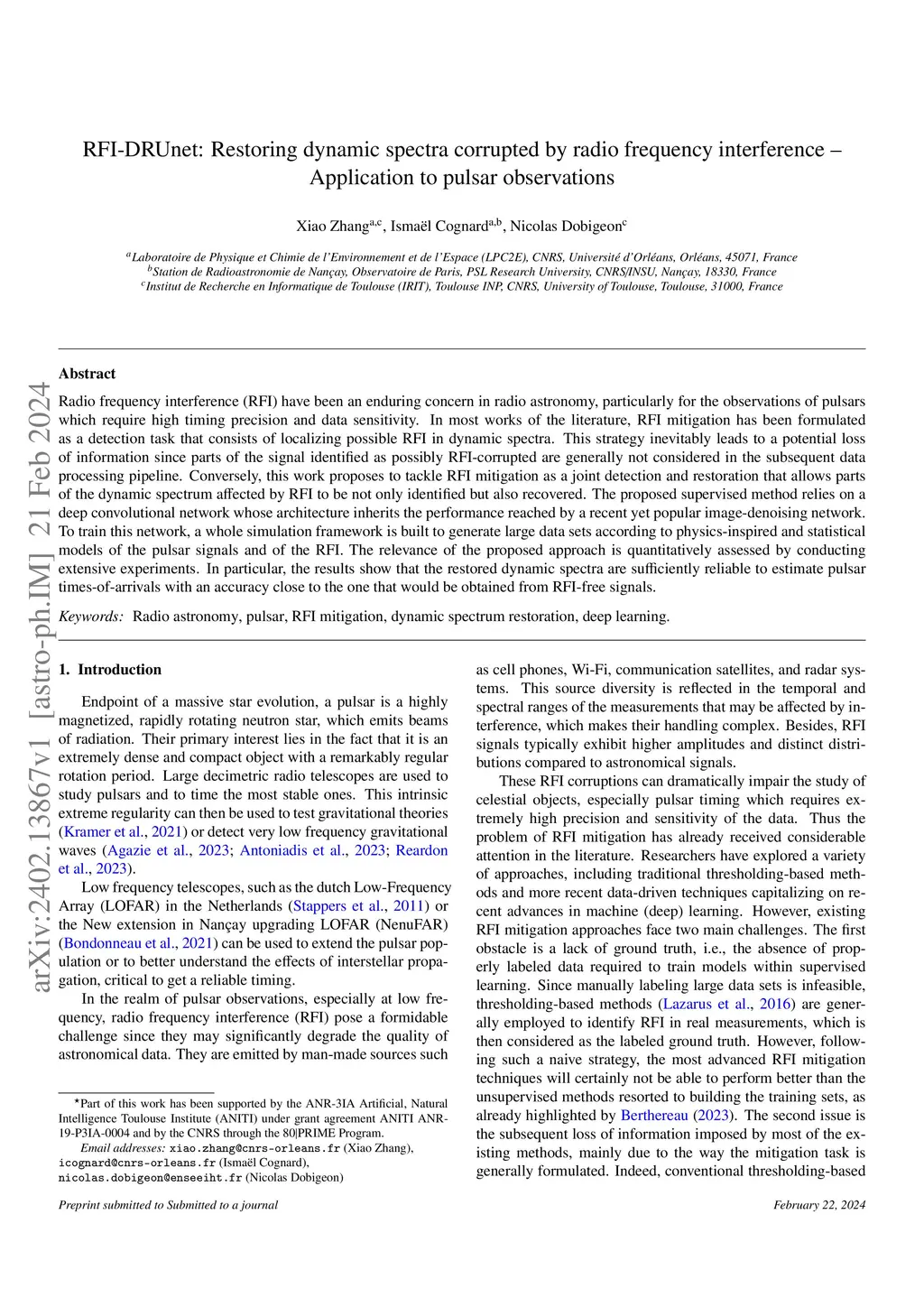 RFI-DRUnet: Restoring dynamic spectra corrupted by radio frequency