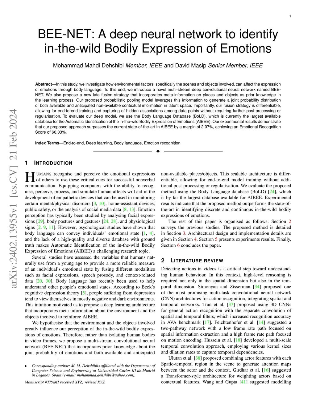 BEE-NET: A deep neural network to identify in-the-wild Bodily Expression