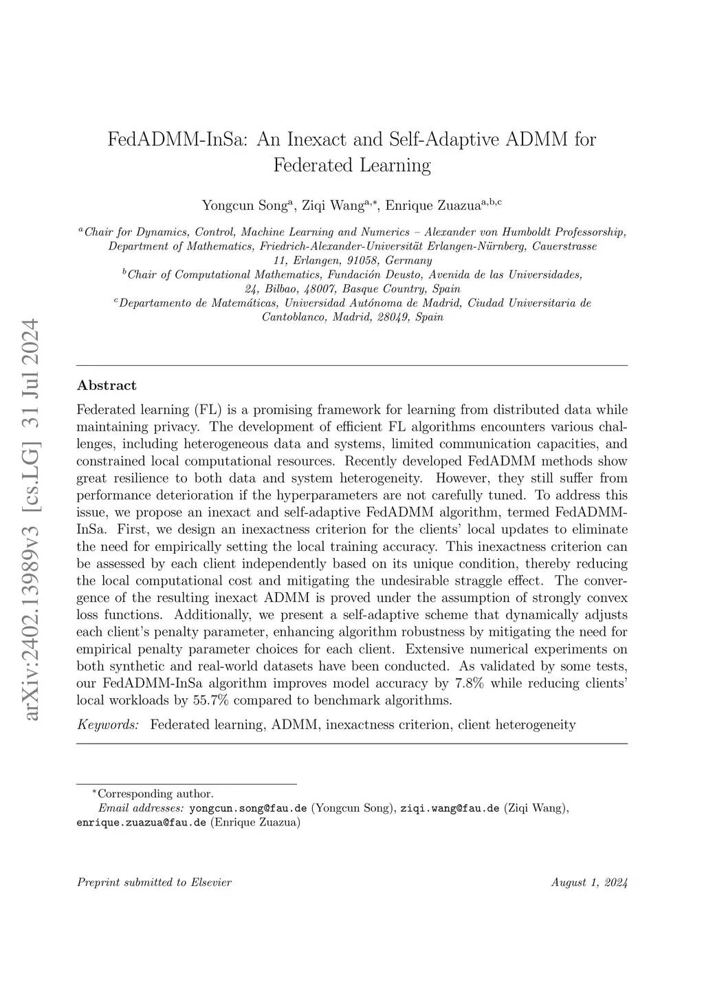 FedADMM-InSa: An Inexact and Self-Adaptive ADMM for Federated Learning