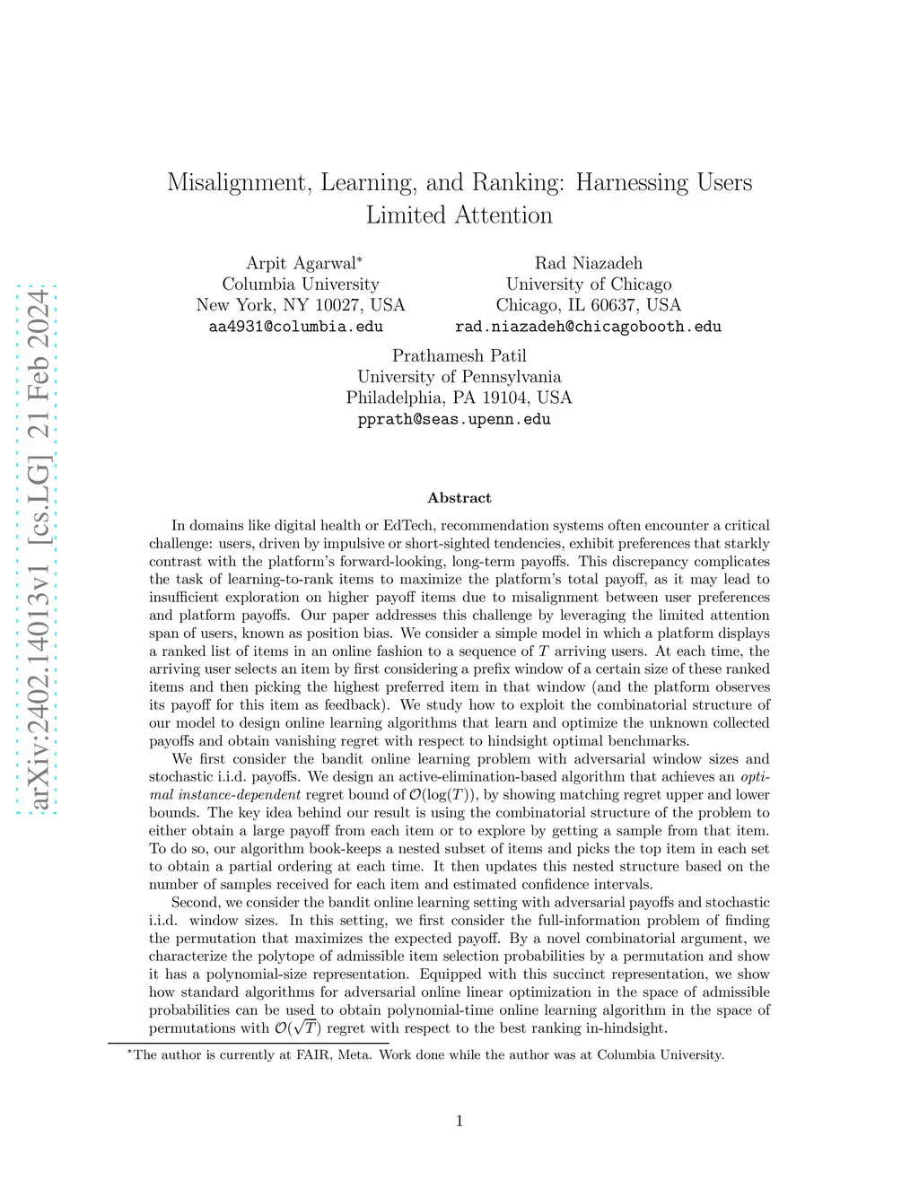 Misalignment, Learning, and Ranking: Harnessing Users Limited Attention