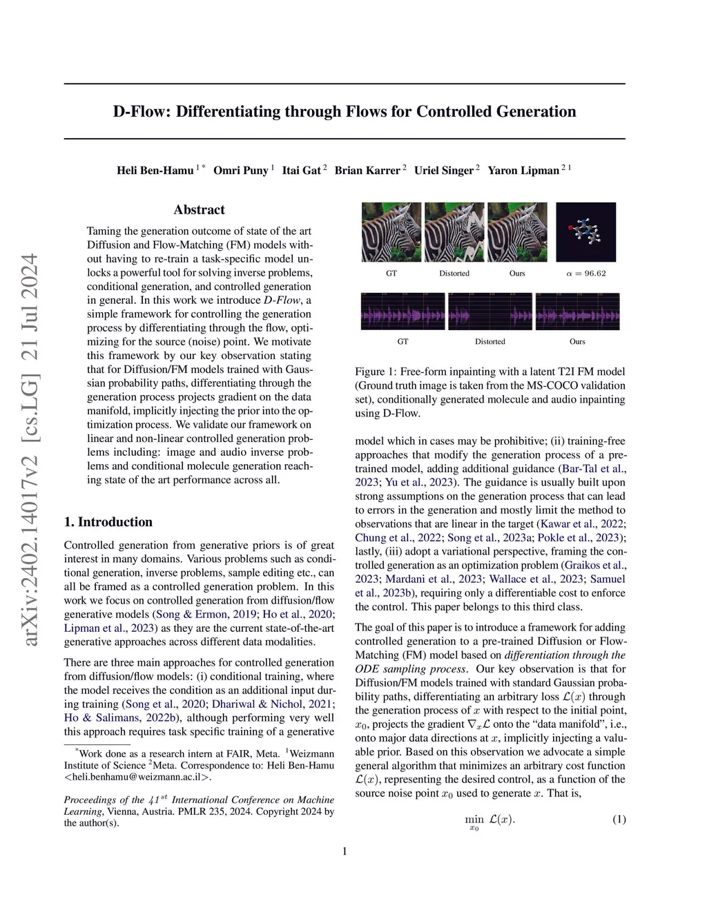 D-Flow: Differentiating through Flows for Controlled Generation