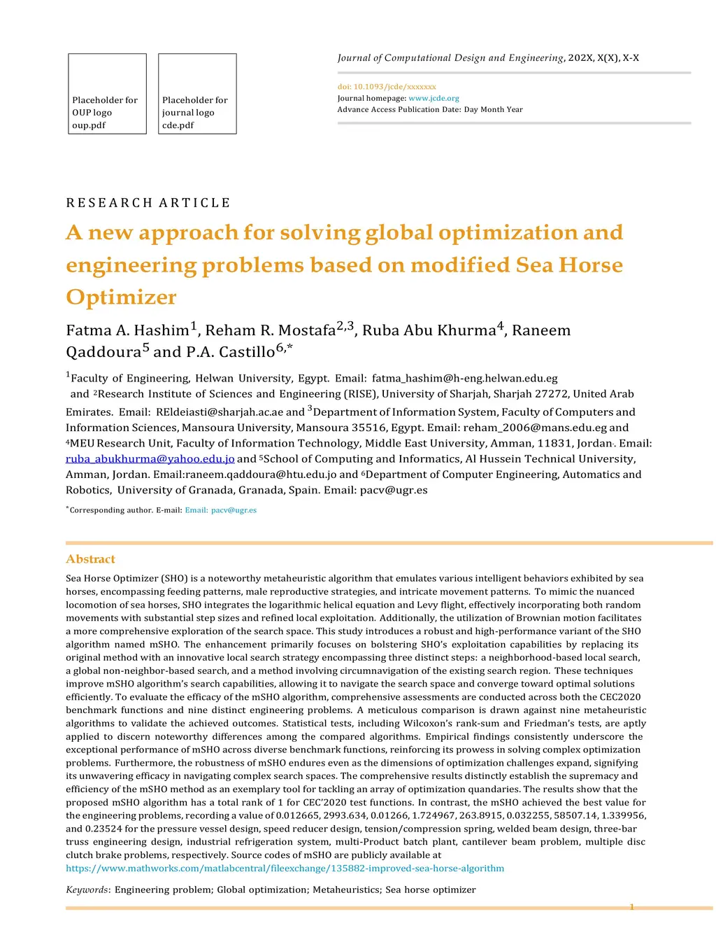 Sea Horse Optimizer (SHO) is a noteworthy metaheuristic algorithm that emulates various intelligent behaviors exhibited by sea horses, encompassing feeding patterns, male reproductive strategies, and intricate movement patterns. To mimic the nuanced locomotion of sea horses, SHO integrates the logarithmic helical equation and Levy flight, effectively incorporating both random movements with substantial step sizes and refined local exploitation. Additionally, the utilization of Brownian motion facilitates a more comprehensive exploration of the search space. This study introduces a robust and high-performance variant of the SHO algorithm named mSHO. The enhancement primarily focuses on bolstering SHO's exploitation capabilities by replacing its original method with an innovative local search strategy encompassing three distinct steps: a neighborhood-based local search, a global non-neighbor-based search, and a method involving circumnavigation of the existing search region. These techniques improve mSHO algorithm's search capabilities, allowing it to navigate the search space and converge toward optimal solutions efficiently. The comprehensive results distinctly establish the supremacy and efficiency of the mSHO method as an exemplary tool for tackling an array of optimization quandaries. The results show that the proposed mSHO algorithm has a total rank of 1 for CEC'2020 test functions. In contrast, the mSHO achieved the best value for the engineering problems, recording a value of 0.012665, 2993.634, 0.01266, 1.724967, 263.8915, 0.032255, 58507.14, 1.339956, and 0.23524 for the pressure vessel design, speed reducer design, tension/compression spring, welded beam design, three-bar truss engineering design, industrial refrigeration system, multi-Product batch plant, cantilever beam problem, multiple disc clutch brake problems, respectively.