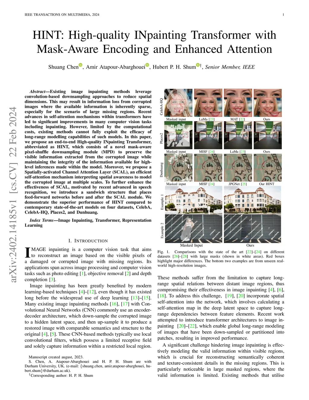 HINT: High-quality INPainting Transformer with Mask-Aware Encoding and