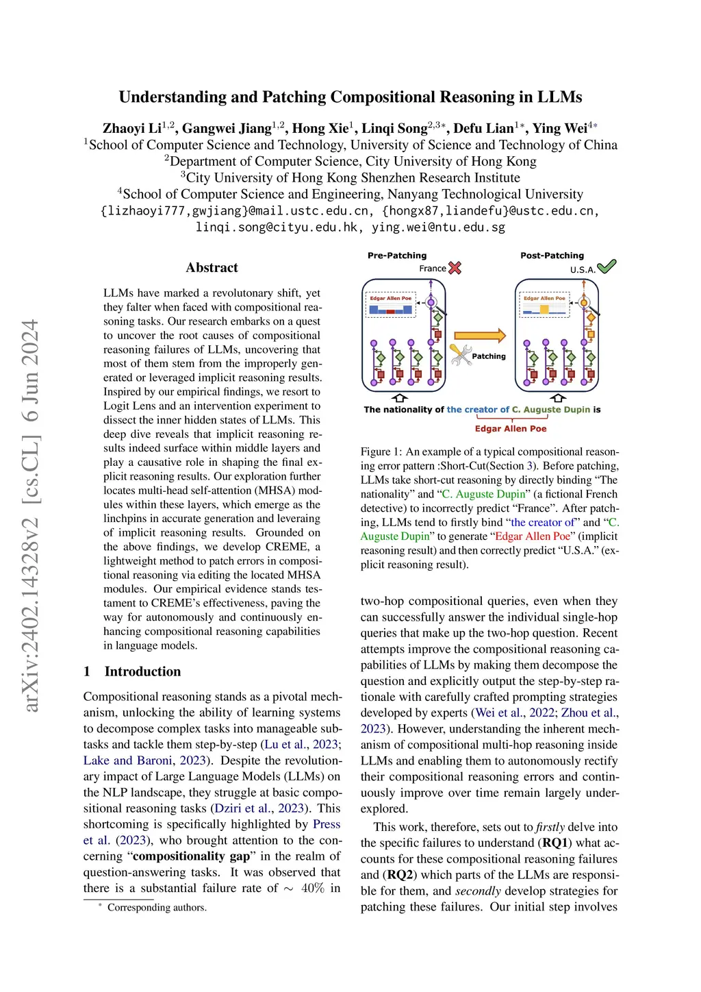 Understanding and Patching Compositional Reasoning in LLMs