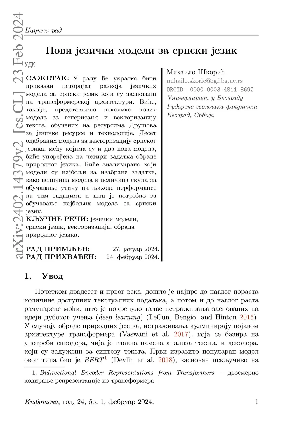 The paper will briefly present the development history of transformer-based language models for the Serbian language. Several new models for text generation and vectorization, trained on the resources of the Society for Language Resources and Technologies, will also be presented. Ten selected vectorization models for Serbian, including two new ones, will be compared on four natural language processing tasks. Paper will analyze which models are the best for each selected task, how does their size and the size of their training sets affect the performance on those tasks, and what is the optimal setting to train the best language models for the Serbian language.